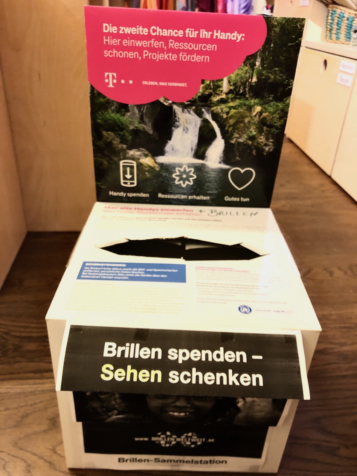 In unserem Weltladen steht wieder die „Mobile-Box“. Sie ist ein beim Umweltamt angezeigtes Rücknahmesystem für gebrauchte Mobiltelefone und wurde 2012 in Köln gegründet. Über 124 Mio. gebrauchte Mobiltelefone liegen ungenützt in Schubladen. Die Handys enthalten viele wertvolle Rohstoffe wie z. B. Silber, Kupfer, Gold. Wir sammeln diese alten gebrauchten Geräte, sie werden anschließend einer umweltgerechten Verwertung zugeführt. Die gesammelten Handys werden von der Deutschen Telekom zur Weiternutzung aufbereitet oder recycelt.